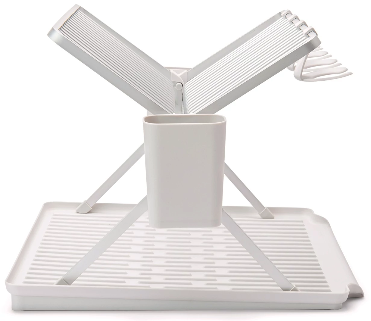 Az edények nem mosódnak ki maguktól, de természetesen megszáradnak! Használja a Brabantia SinkSide összecsukható edényszárítót csepptálcával az edények szárításához. A nagyobb méretének köszönhetően az állványon akár 17 tányér és 4 borospohár is elfér. Jellemzői közé tartozik a két kivehető evőeszközkosár, a karc- és csúszásmentes szilikon talpak, valamint az időálló korrózióálló anyagok. A csepptálca bordázata elősegíti a levegő áramlását, a lejtős kialakítás pedig a vizet közvetlenül a mosogatóba vezeti. Egyszerűen tárolható és sokoldalúan használható.