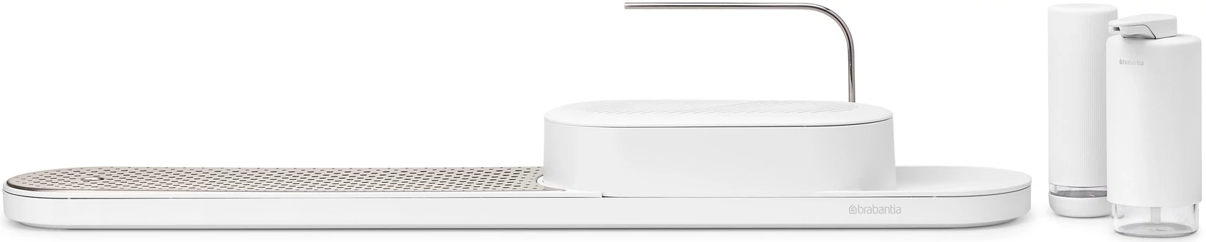 A szett része két 200 ml-es szappanadagoló, amely folyékony szappanhoz vagy habszappanhoz egyaránt használható, valamint egy innovatív mosogatószer - adagoló, amellyel egyetlen szorító mozdulattal adagolhatja a mosogatószert. Mindkét eszköz könnyen újratölthető és kompatibilis a legtöbb utántöltő csomaggal. A csúszásmentes, szilikon bélésű alap stabilan a helyén tartja a szettet, a korrózióálló anyagok pedig garantálják, hogy nedves környezetben is hosszú élettartamú marad.