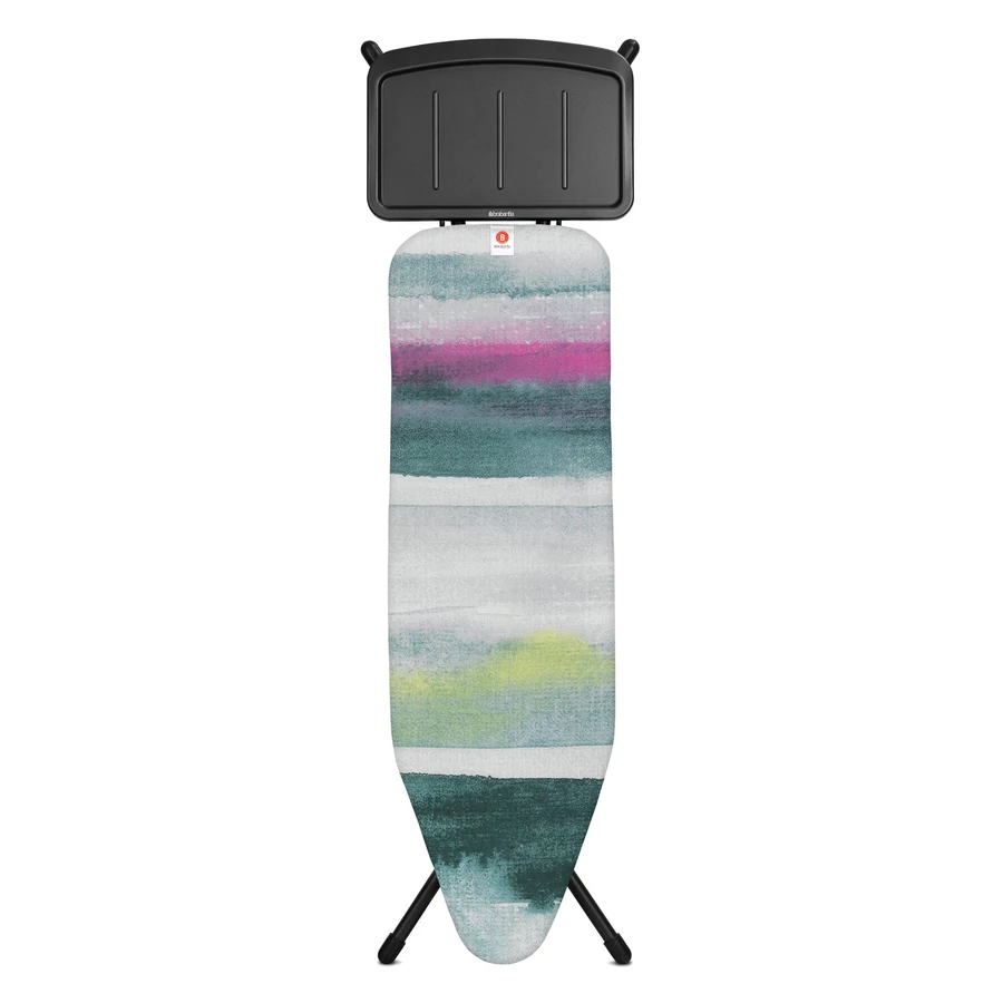 A Brabantia vasalódeszka minden vasalási igényt kielégít, legyen szó akár nagyméretű gőzállomásról is. A B méretű, 1240x380 mm-es vasalófelület bőséges helyet biztosít minden ruhadarab számára, míg a beépített fém tálcás gőzegységtartó stabilan rögzíti a nehezebb vasalókat is, akár 10 kg terhelésig.