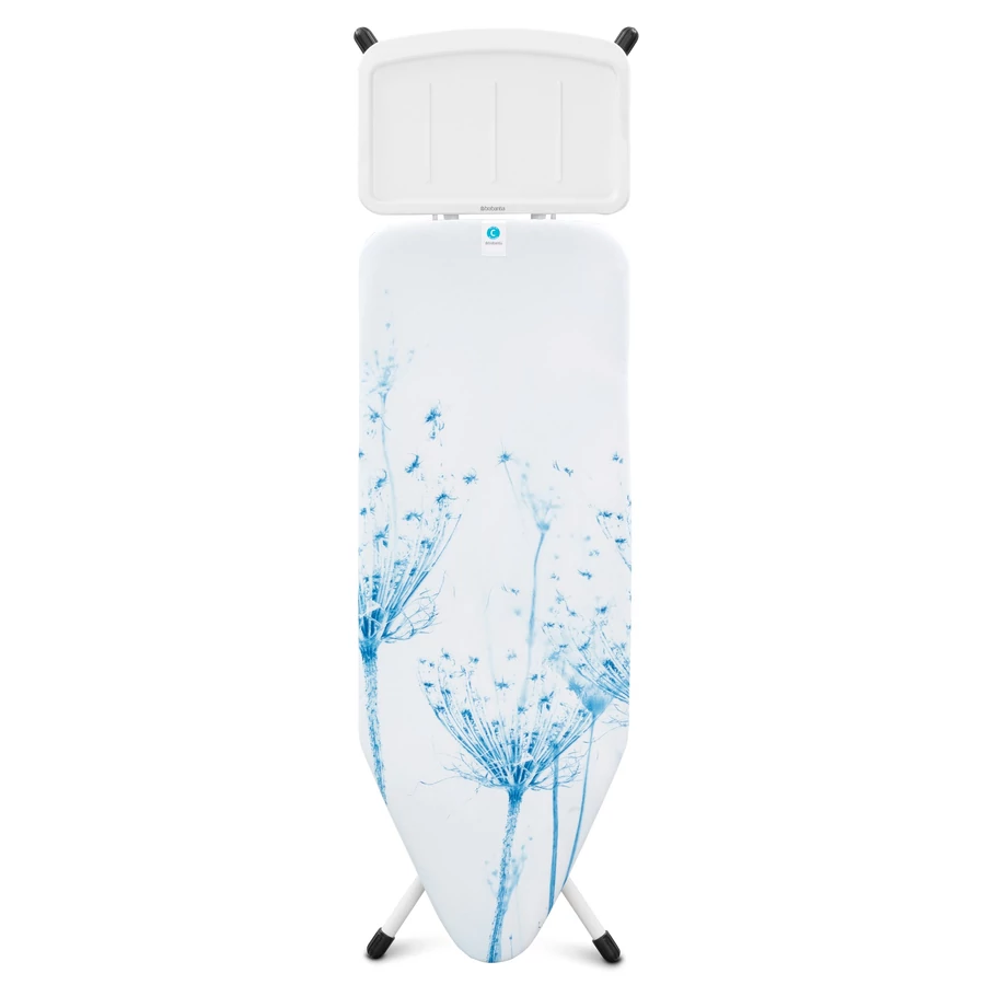 Brabantia Solid Steam Unit Holder vasalódeszka 1240x450mm - C méret, fix vasalótálca gőzállomásokhoz, D=22mm fehér váz, pamut virág huzat - 108884