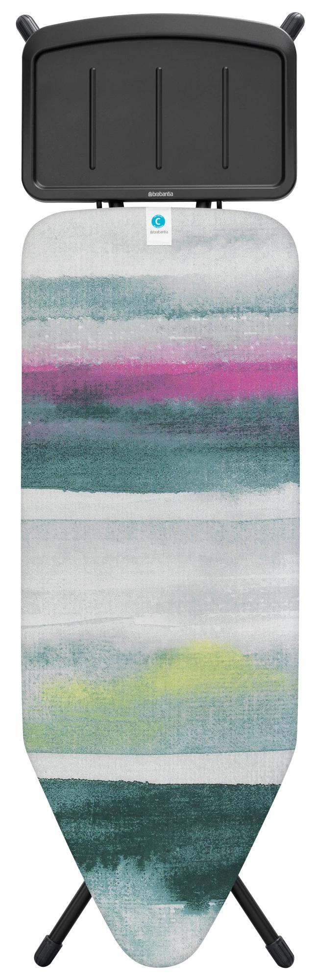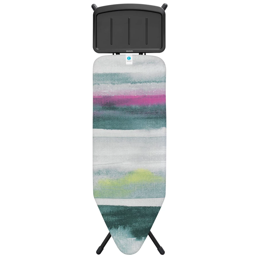 A Brabantia C méretű vasalódeszka reggeli szellő mintázatú huzattal a tökéletes vasalás élményét nyújtja. 124x45 cm-es extra nagy felületén akár nagyobb ruhadarabok is könnyedén kisimíthatók. A stabil, gőzállomás tartóval ellátott kivitel és az állítható magasság (75-98 cm) kényelmes használatot biztosít minden otthonban.
