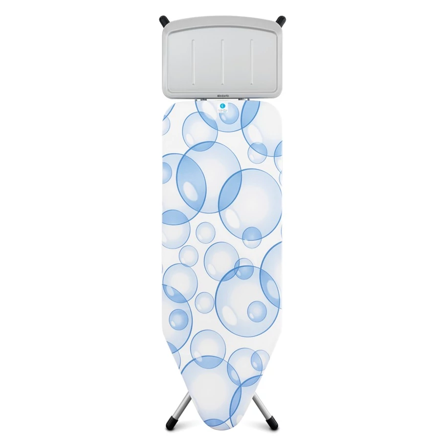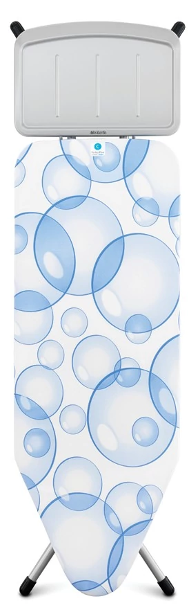 A prémium Brabantia C méretű vasalódeszka metalizált szürke vázzal és buborék mintás PerfectFlow huzattal a professzionális vasalás élményét nyújtja. Az extra nagy 124x45 cm-es felület, a stabil kialakítás és a gőzállomásokhoz tervezett tartó tökéletes eredményt garantál minden alkalommal.