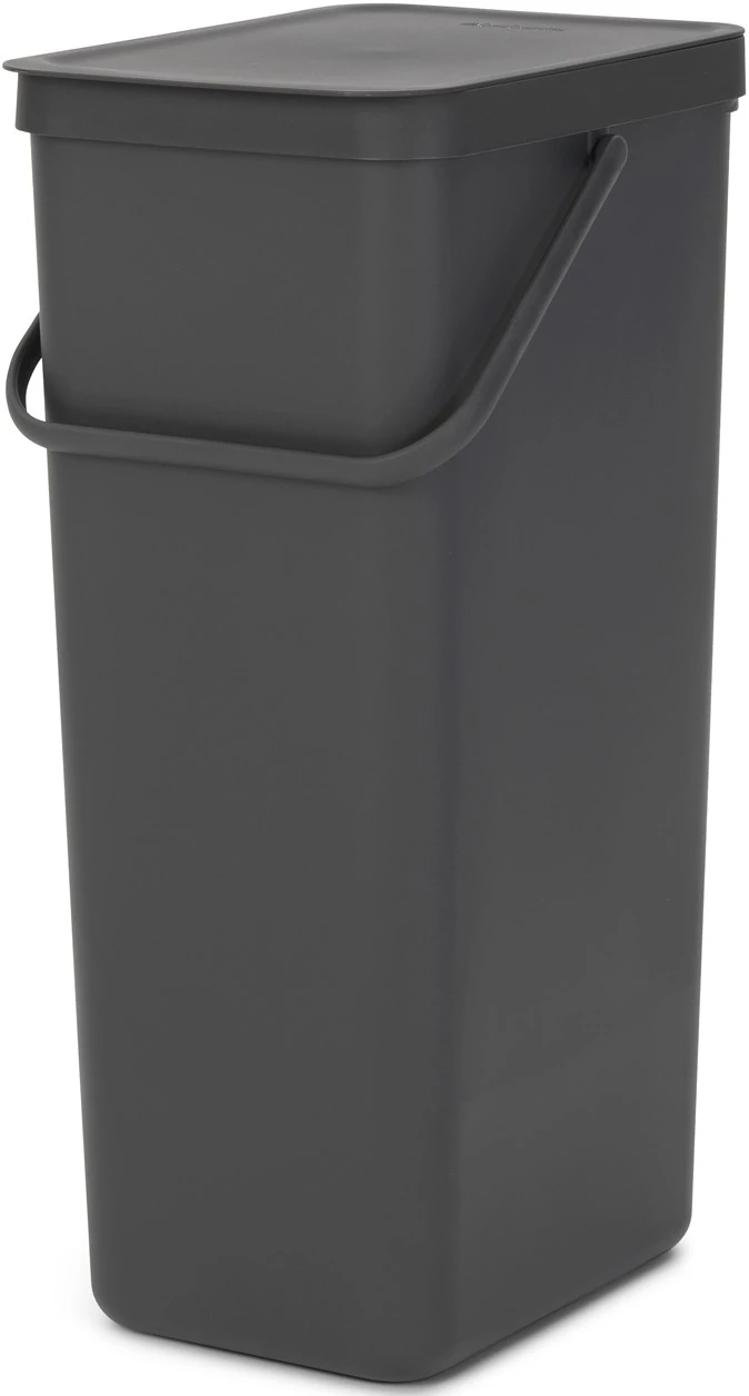 Brabantia Sort & Go konyhai szemetes felnyitható fedéllel, fogantyúval szelektív és komposzt gyűjtéséhez, 40L - L méret, sötétszürke - 251047