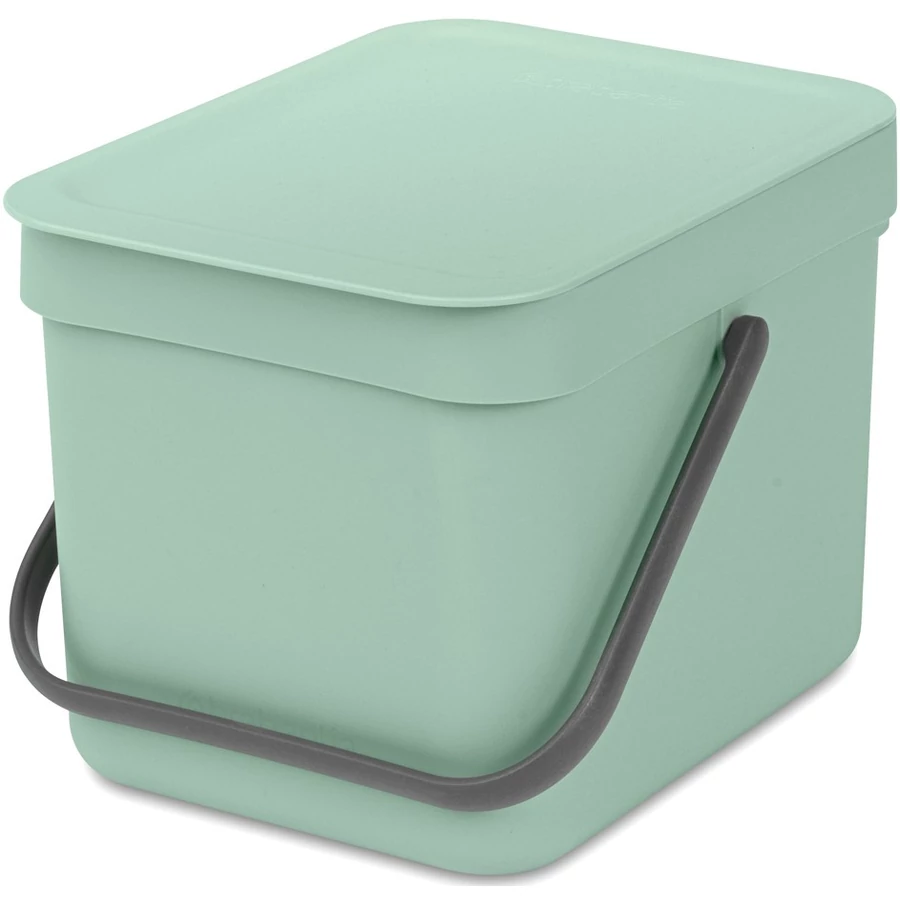 Brabantia Sort & Go konyhai szemetes felnyitható fedéllel, fogantyúval szelektív és komposzt gyűjtéséhez, 6L - S méret, jáde zöld - 211768