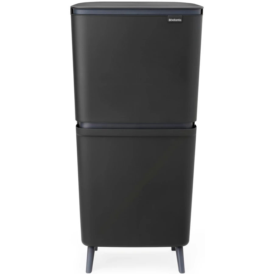 Brabantia SortUp Recycle Bin Hi 2 szintes szelektív hulladékgyűjtő torony, Soft-Close fedéllel, magasított, lábakon álló, 10+10+25L- J méret, műanyag, sötétszürke