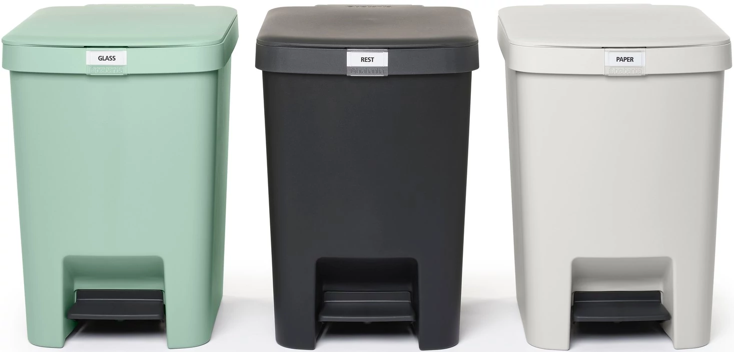 Brabantia StepUp szelektív hulladékgyűjtő szett, 3db pedálos szemetes, 25L - J méret, 91% újrahasznosított műanyag - SU25L-SET