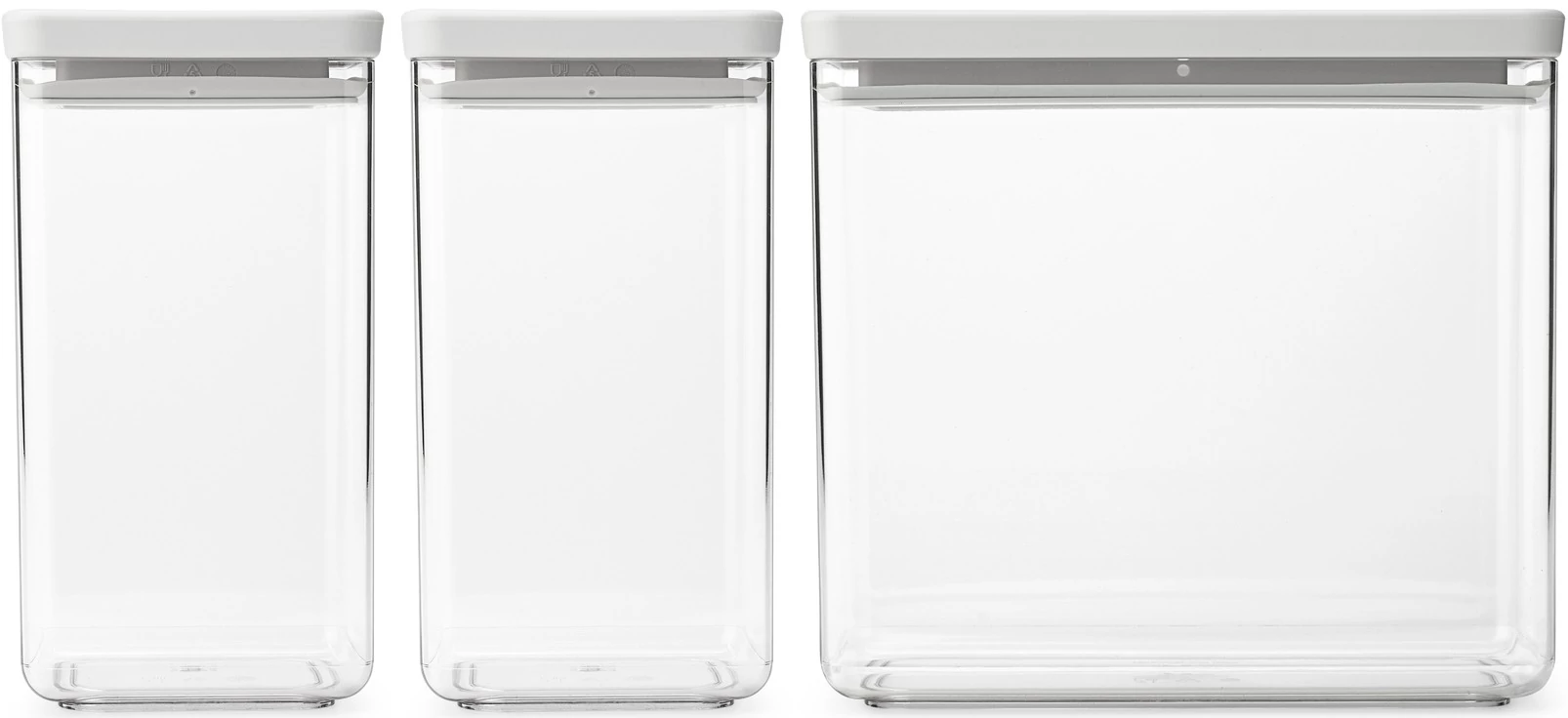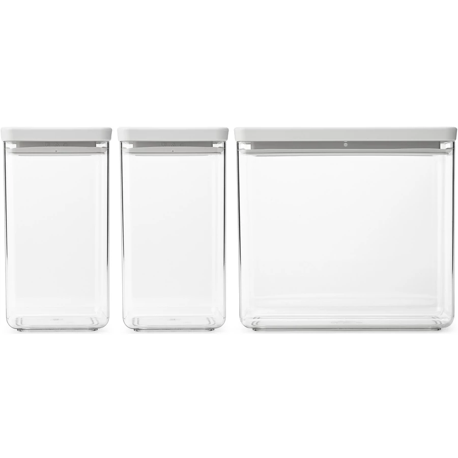 Brabantia tárolóedény készlet, 3db-os, 2x1,6L/1x3,5L, egymásra rakható, légmentes záródás, szögletes, világosszürke, átlátszó műanyag tartály - 230769