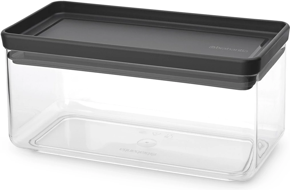 Brabantia tárolóedény 1,5L, egymásra rakható, légmentes záródás, lapos, szögletes, sötétszürke, átlátszó műanyag tartály - 229923