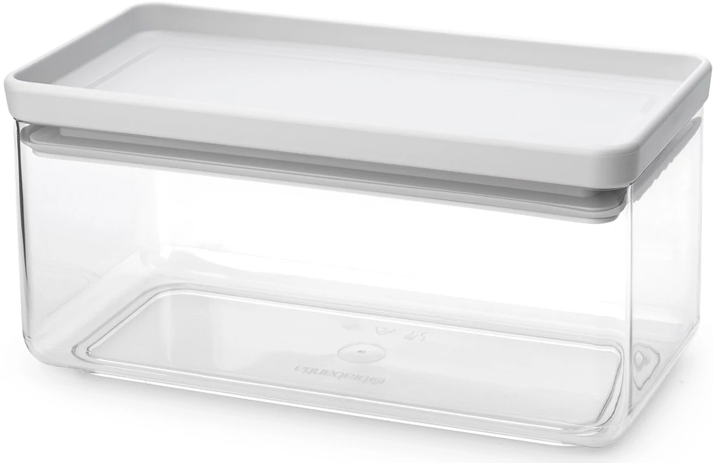 Brabantia tárolóedény 1,5L, egymásra rakható, légmentes záródás, lapos, szögletes, világosszürke, átlátszó műanyag tartály - 230608