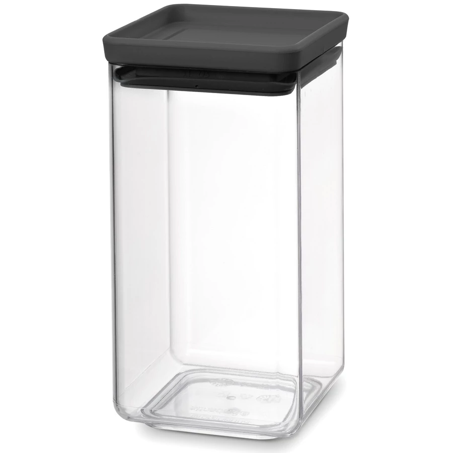 Brabantia tárolóedény 1,6L, egymásra rakható, légmentes záródás, szögletes, sötétszürke, átlátszó műanyag tartály - 122385
