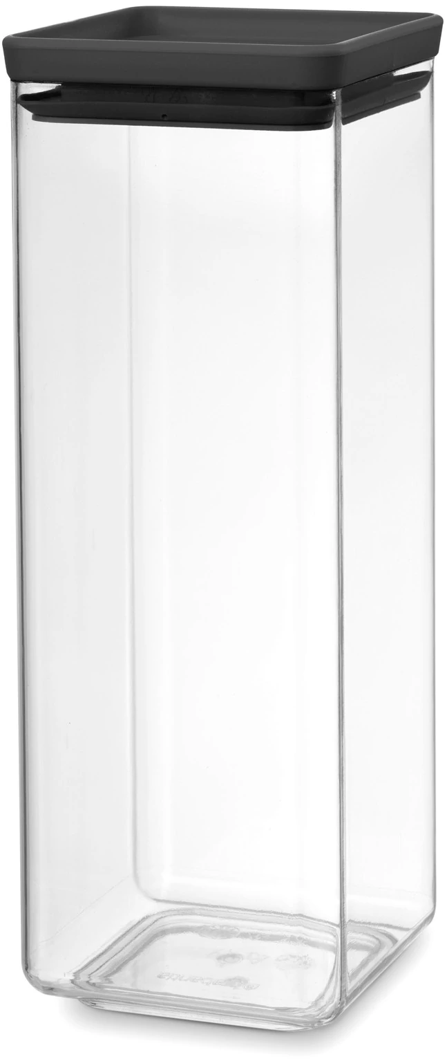 Brabantia tárolóedény 2,5L, egymásra rakható, légmentes záródás, szögletes, sötétszürke, átlátszó műanyag tartály - 122408