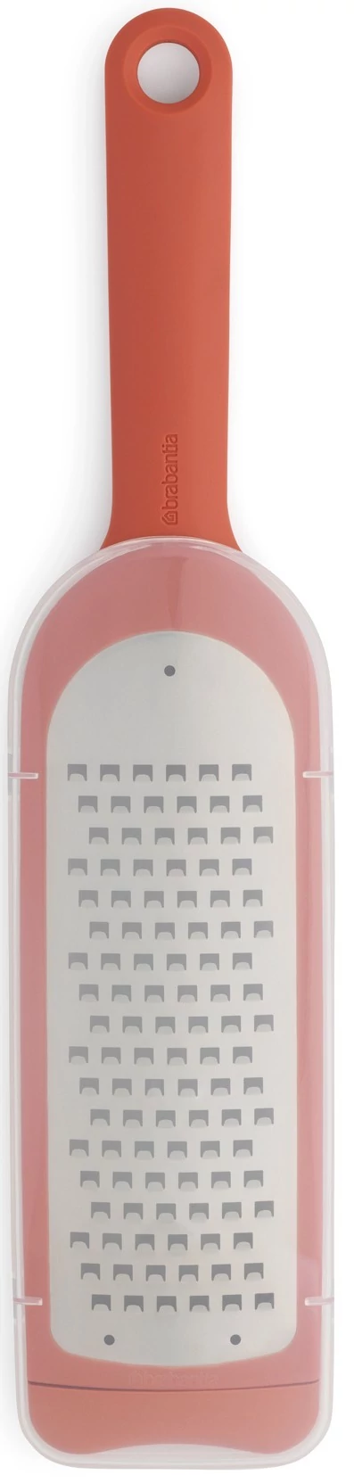 A Brabantia Tasty+ durva reszelő terrakotta rózsaszín színben a konyhája praktikus kiegészítője. Rozsdamentes acél pengéje könnyedén reszel sajtot, káposztát, zöldségeket. Csúszásgátló talppal, védőfedéllel és akasztóval rendelkezik, mosogatógépben tisztítható, 96%-ban újrahasznosítható.