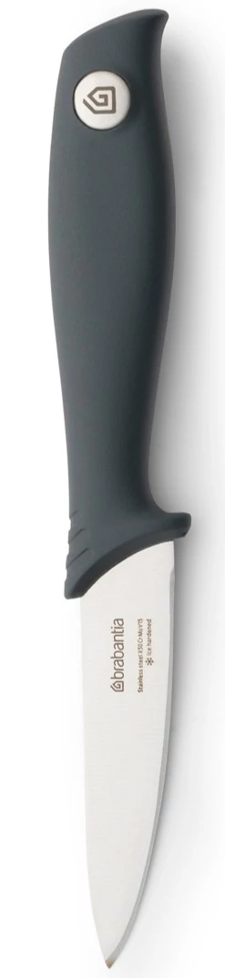 A Brabantia Tasty+ sötétszürke hámozókés precíz megoldást kínál a mindennapi konyhai feladatokhoz. Jégkeményre edzett, magas széntartalmú acélpengéje tartós élességet biztosít, míg az ergonomikus markolat biztonságos fogást nyújt. Fenntartható választás: 14%-ban újrahasznosított anyagból készült.