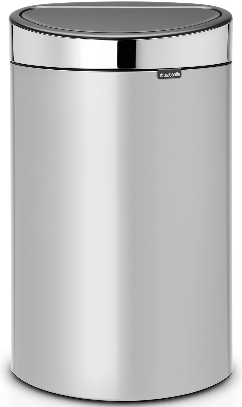 Brabantia Touch Bin New Soft-Touch nyomófedeles hulladékgyűjtő belső tartállyal, ovális, 40L - L méret, acél, metál szürke test, fényes fedő - 114861