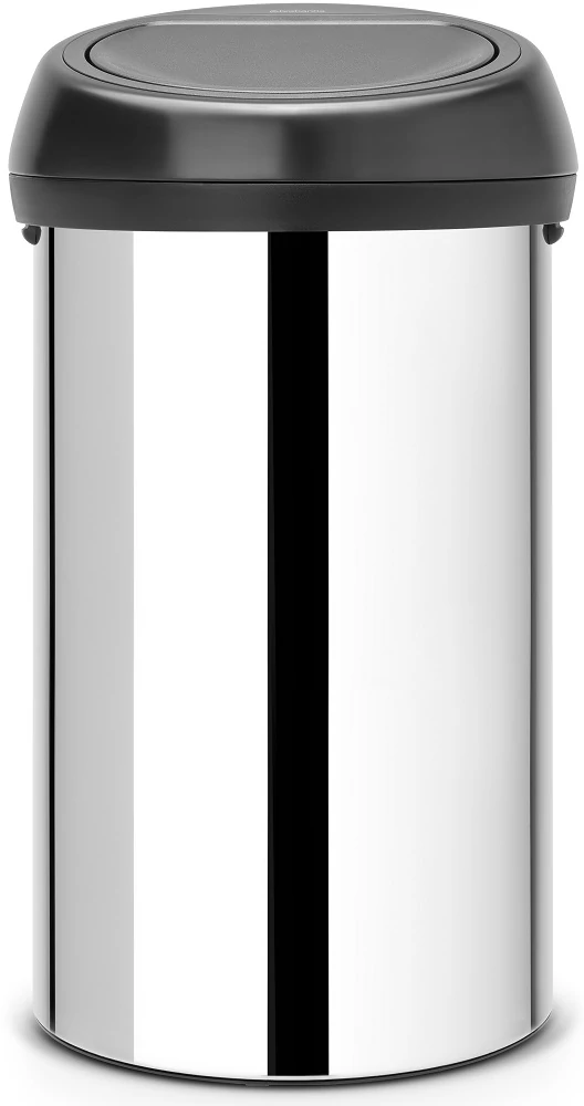 Brabantia Touch Bin nyomófedeles hulladékgyűjtő XXL, 60L - H méret, fényes r.m. acél test, matt fekete fedő - 402586