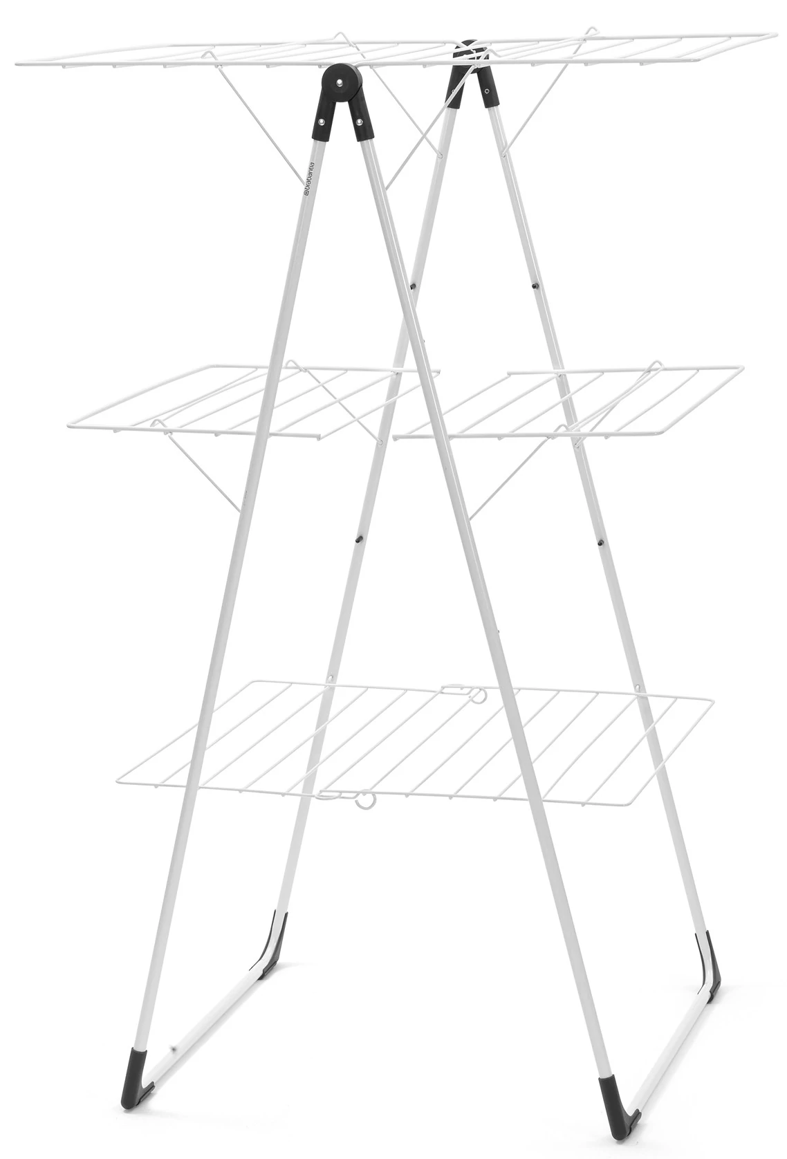 Brabantia Tower Drying Rack 3 szintes ruhaszárító állvány kompakt kialakítással a szűkös helyekre, 23m szárítási hossz, 20kg teherbírás, összecsukható, acél, fehér - 477843