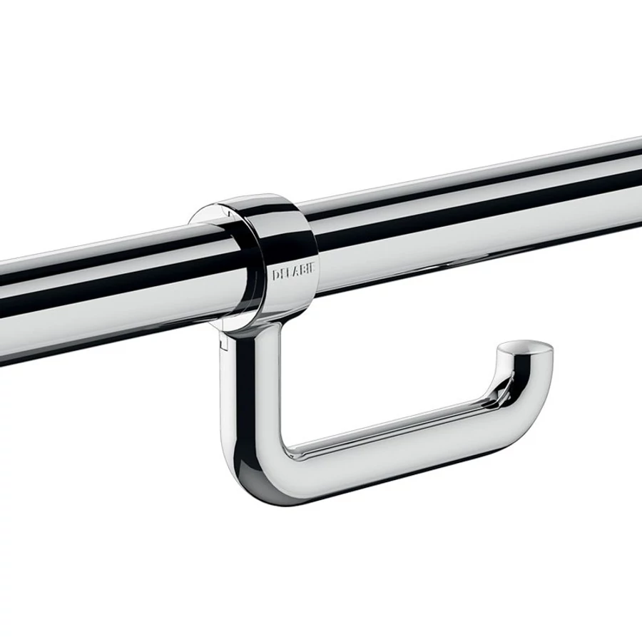 DELABIE 32-34 mm átmérőjű csövekre rögzíthető WC-papír tartó felhajtható kapaszkodókhoz, nagy szilárdságú fehér nylon