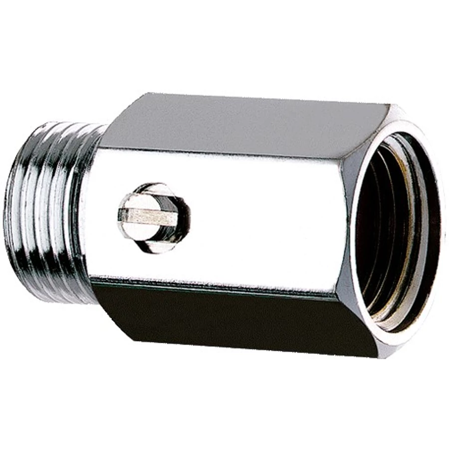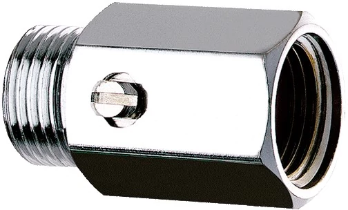 DELABIE átfolyásszabályozó szelep 5 L/perc víztakarékos zuhany rendszerekhez, M1/2"-F1/2", H=24mm, krómozott sárgaréz