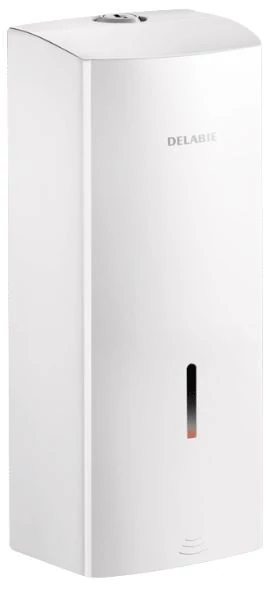 DELABIE automata szappanadagoló, SLIM, 1 literes műanyag tartállyal, r.m. acél, selyem, elemes 6x1,5V (AA)