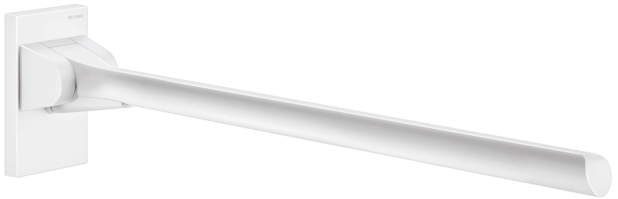 DELABIE Be-Line exkluzív fali felhajtható kapaszkodó lábbal, 5mm hátfallal, D=42mm, alumínium, fehér, 650mm