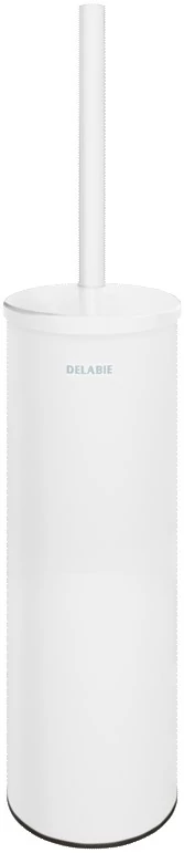 Magas házzal szerelt, matt fehér, falra szerelhető DELABIE Be-Line WC-kefe 1 mm vastagságú AISI304-es rozsdamentes acélból. Bakteriosztatikus, vandálbiztos, robusztus termék, könnyen tisztítható műanyag belső rész, fröccsenésmentes.