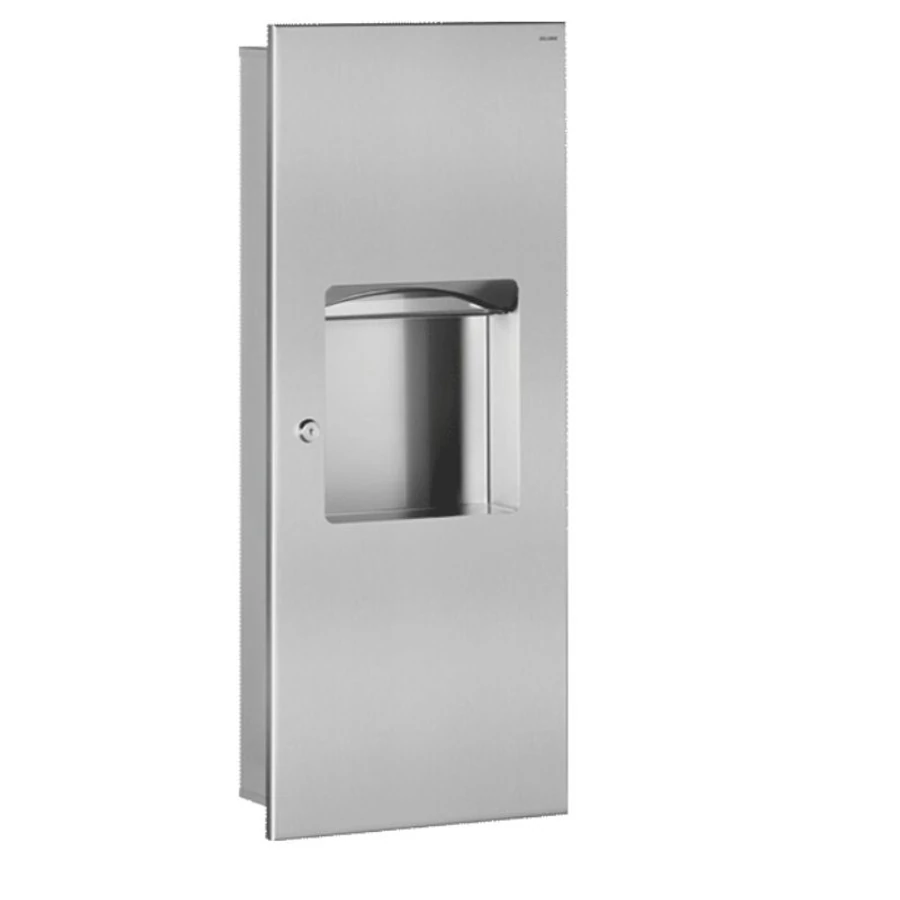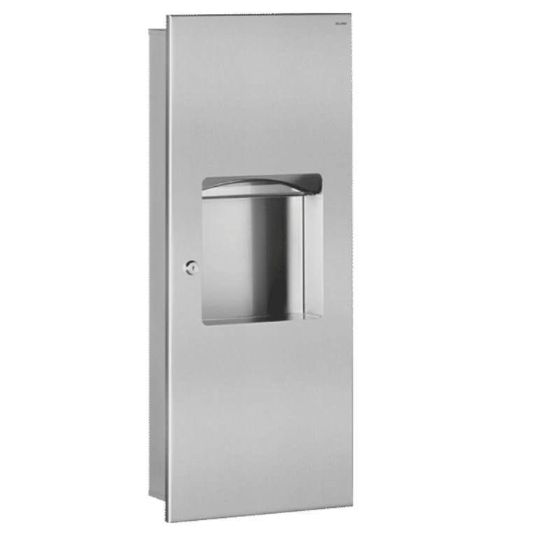 DELABIE beépített kompakt szekrény papírkéztörlő adagolóval, 400-600 lapos kapacitással és 30 literes hulladékgyűjtővel, r.m. acél, selyem