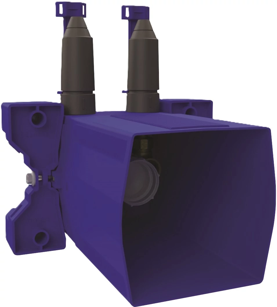 DELABIE beépített, vízzáró BOX mechanikus keverős zuhanycsapokhoz, falon kívüli, előlapon kilépő kevert víz ághoz, 10-120mm előtétfal, min. 83mm süllyesztés, kit 1/2
