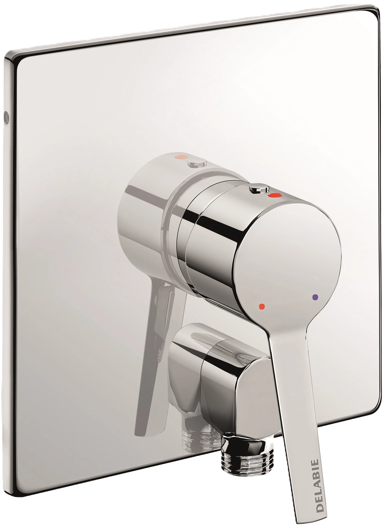 DELABIE SECURITHERM Dual Control falon kívüli termosztatikus zuhany csaptelep forrázásgátlós hőfok-állítóval és átfolyás-szabályzóval, 9L/p, sima csatlakozók
