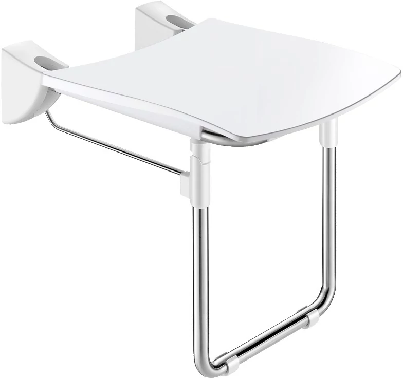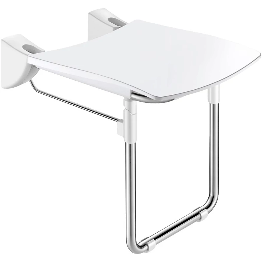 DELABIE Comfort ülőfelületű felhajtható zuhanyülőke lábbal, 420x506mm, fehér r.m. acél vázon