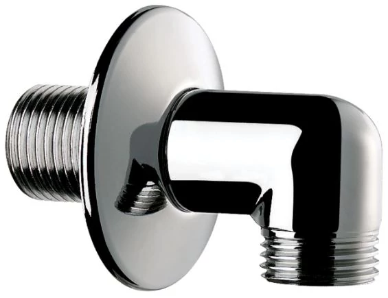 DELABIE falon kívüli könyökcsatlakozó integrált elzárószelep takarótárcsával, M1/2" - F1/2" csatlakozásokkal, sárgaréz, krómozott fényes