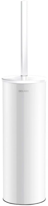 Magas házzal szerelt, fehérszínű, falra szerelhető DELABIE WC-kefe 1 mm vastagságú AISI304-es rozsdamentes acélból. Bakteriosztatikus, vandálbiztos, robusztus termék, könnyen tisztítható műanyag belső rész, fröccsenésmentes.