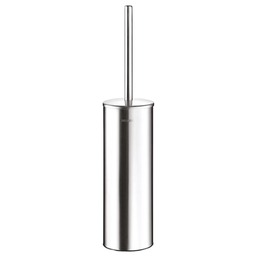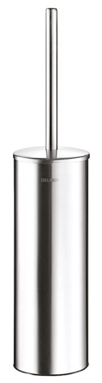 Magas házzal szerelt, szálcsiszolt, selyem matt színű, falra szerelhető DELABIE WC-kefe 1 mm vastagságú AISI304-es rozsdamentes acélból. Bakteriosztatikus, vandálbiztos, robusztus termék, könnyen tisztítható műanyag belső rész, fröccsenésmentes.