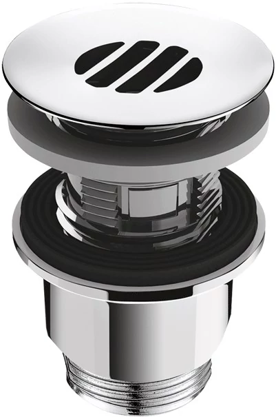 A DELABIE HYGIÉNA fix rögzítésű rácsos leeresztő szelep kiválóan alkalmas közösségi mosdók kerámia és kóracél kézmosó kagylóinak felszerelésére. 1 mm lemezvastagságú nemesacél mosdókagylóktól kezdve egészen az akár 45 mm falvastagságú kerámia mosdókra is rögzíthető a termék. A leeresztő szelep rácsos fedlapja krómozott sárgarézből, a test és a rögzítőanyag pedig nagy szilárdságú műanyagból készül.