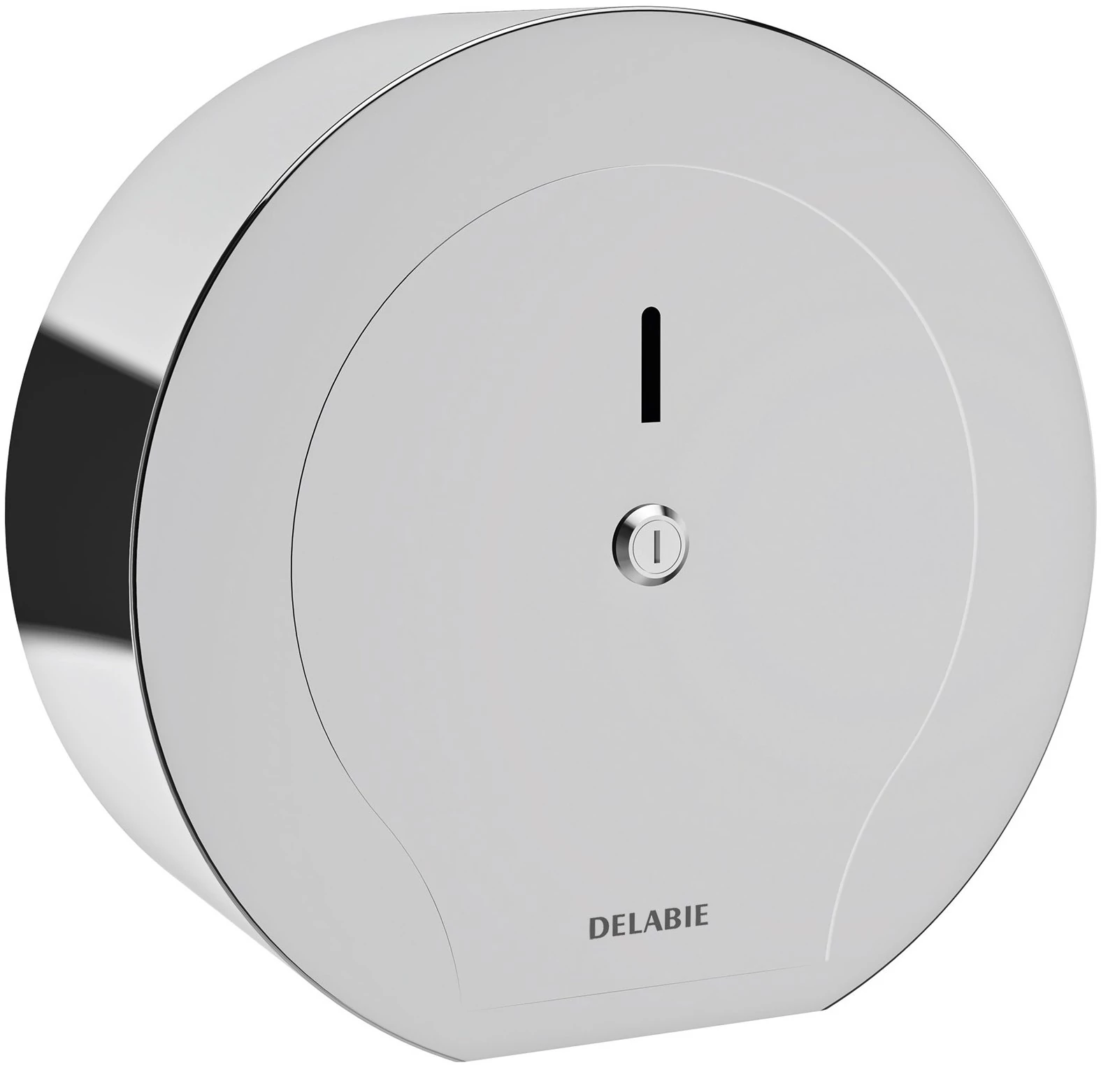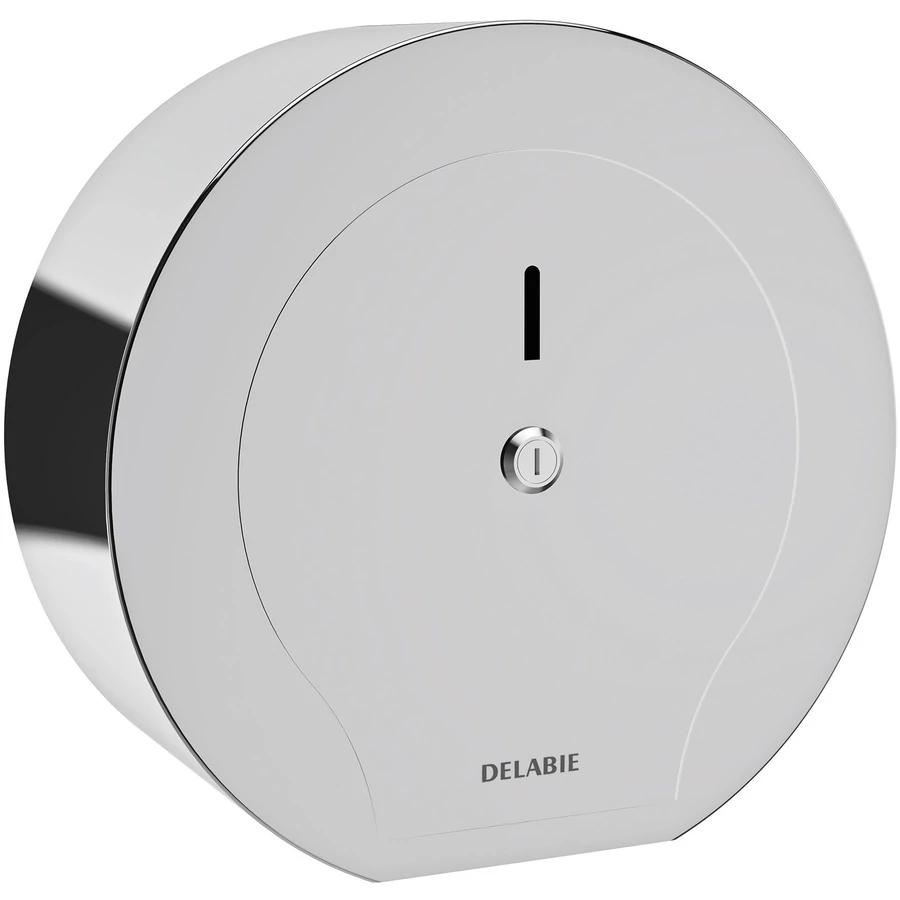 DELABIE ipari extra nagytekercses WC-papír adagoló 400m tekercsekhez, D=310mm, zárható, vandálbiztos r.m. acél ház, selyem
