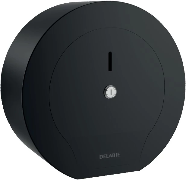 DELABIE ipari extra nagytekercses WC-papír adagoló 400m tekercsekhez, D=310mm, zárható, vandálbiztos r.m. acél ház, selyem