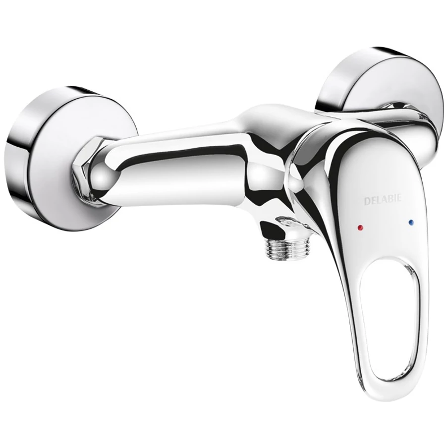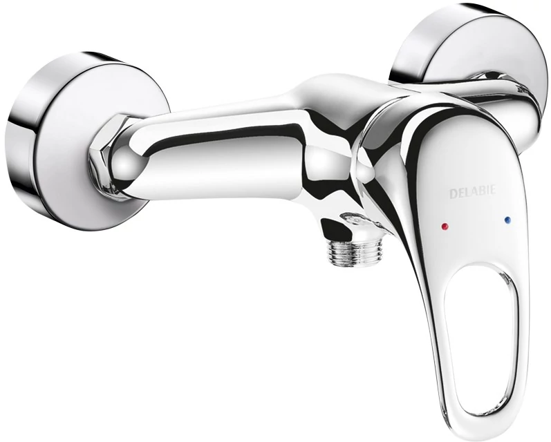 DELABIE kézi keverős zuhanycsap ergonomikus karral, alsó csonkkal, falon kívüli vízbekötéssel, 9L/p