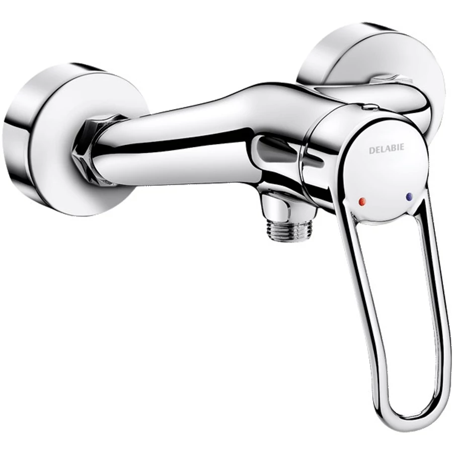 DELABIE kézi keverős zuhanycsap lyukas karral, alsó csonkkal, falon kívüli vízbekötéssel, 9L/p