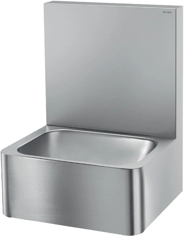 DELABIE sebészi bemosakodó vályú magas hátfallal, kevert vízre 1x1db 22mm csapfurattal, egy állásos 700mm, r.m. acél
