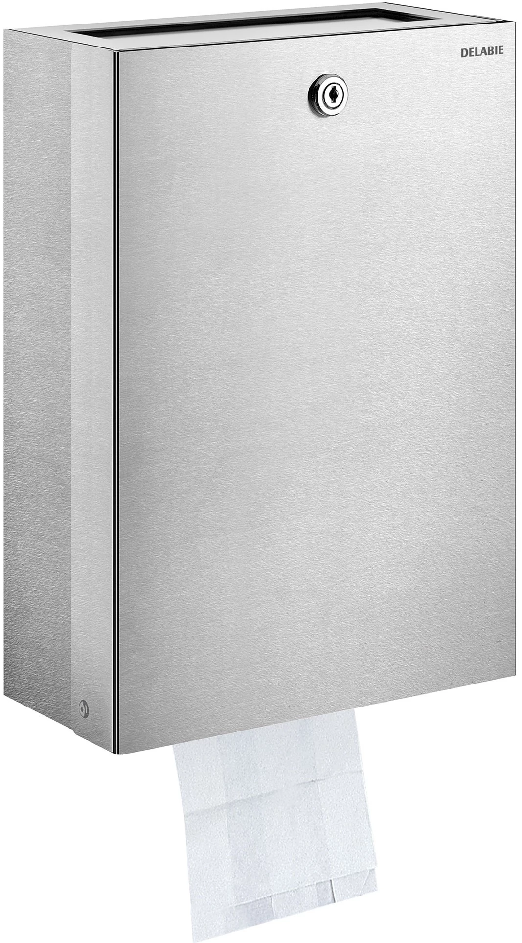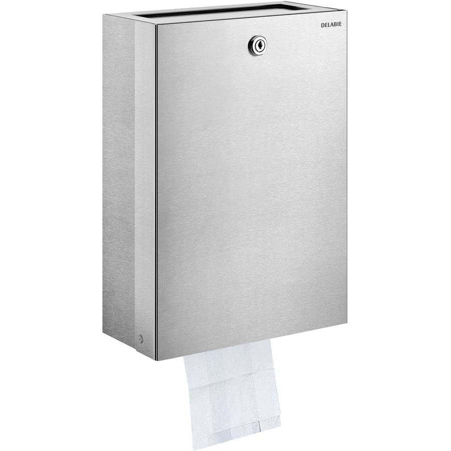 DELABIE kombinált 9L intim hulladékgyűjtő és higiénés tasak adagoló, kulccsal zárható, r.m. acél, fényes
