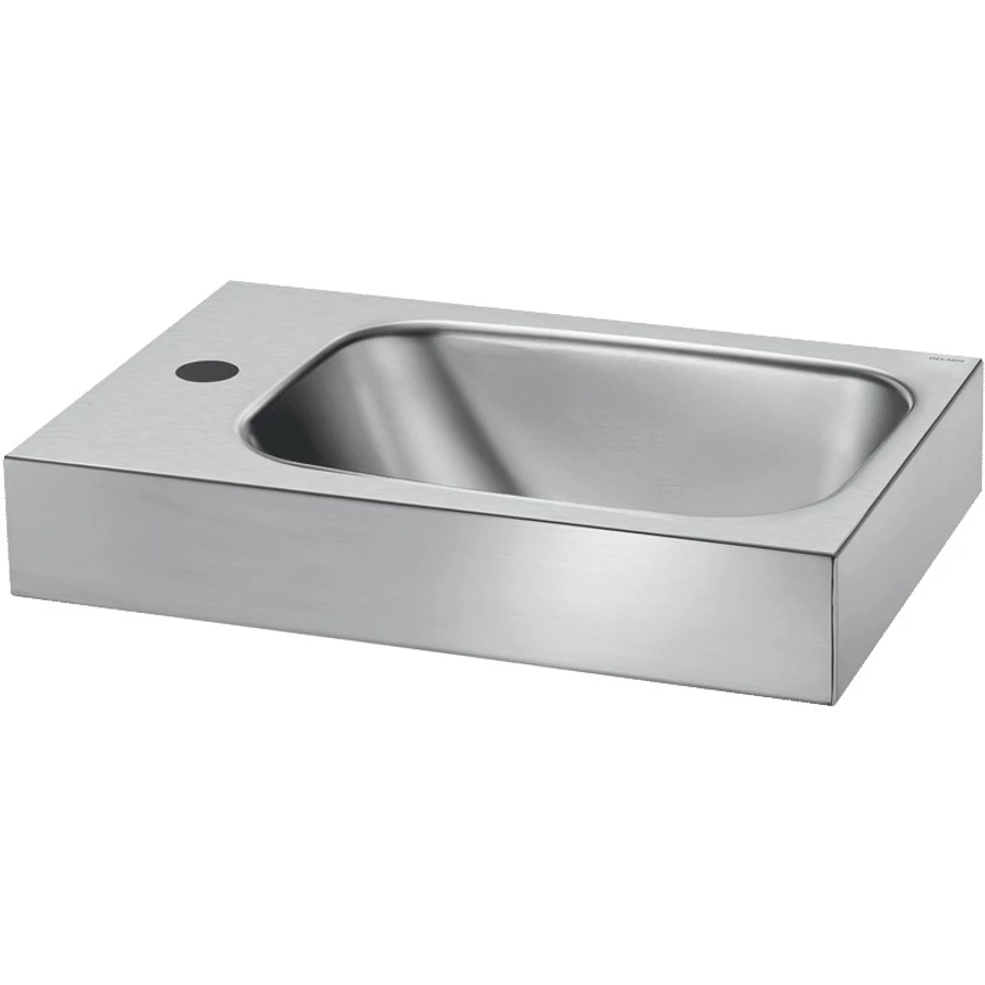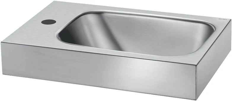 DELABIE LAVANDO WC keskeny r.m. acél fali kézmosó 35mm jobb oldali csapfurattal, selyem, 450x300mm