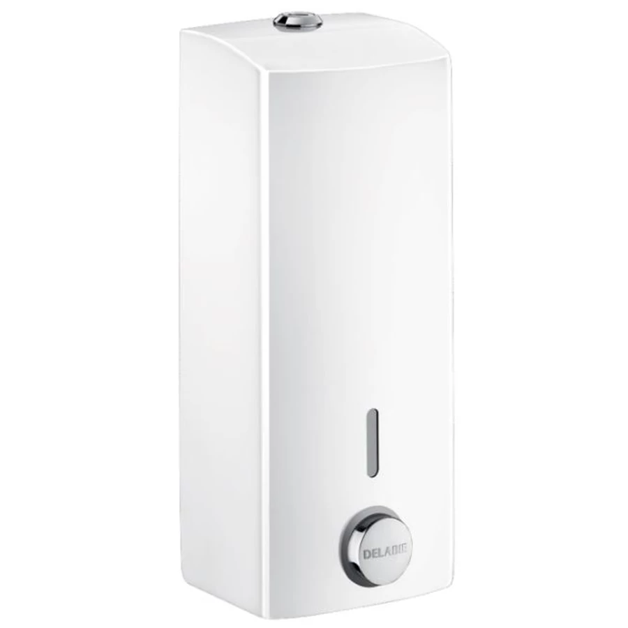 DELABIE nyomógombos szappanadagoló, lekerekített, SLIM dizájn, 500ml műanyag tartály, 1mm r.m. acél lemez, fehér