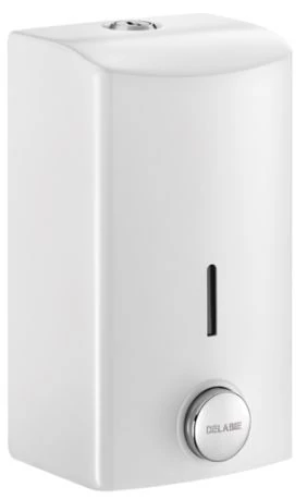 DELABIE nyomógombos szappanadagoló, lekerekített, SLIM dizájn, 1000ml műanyag tartály, 1mm r.m. acél lemez, fehér
