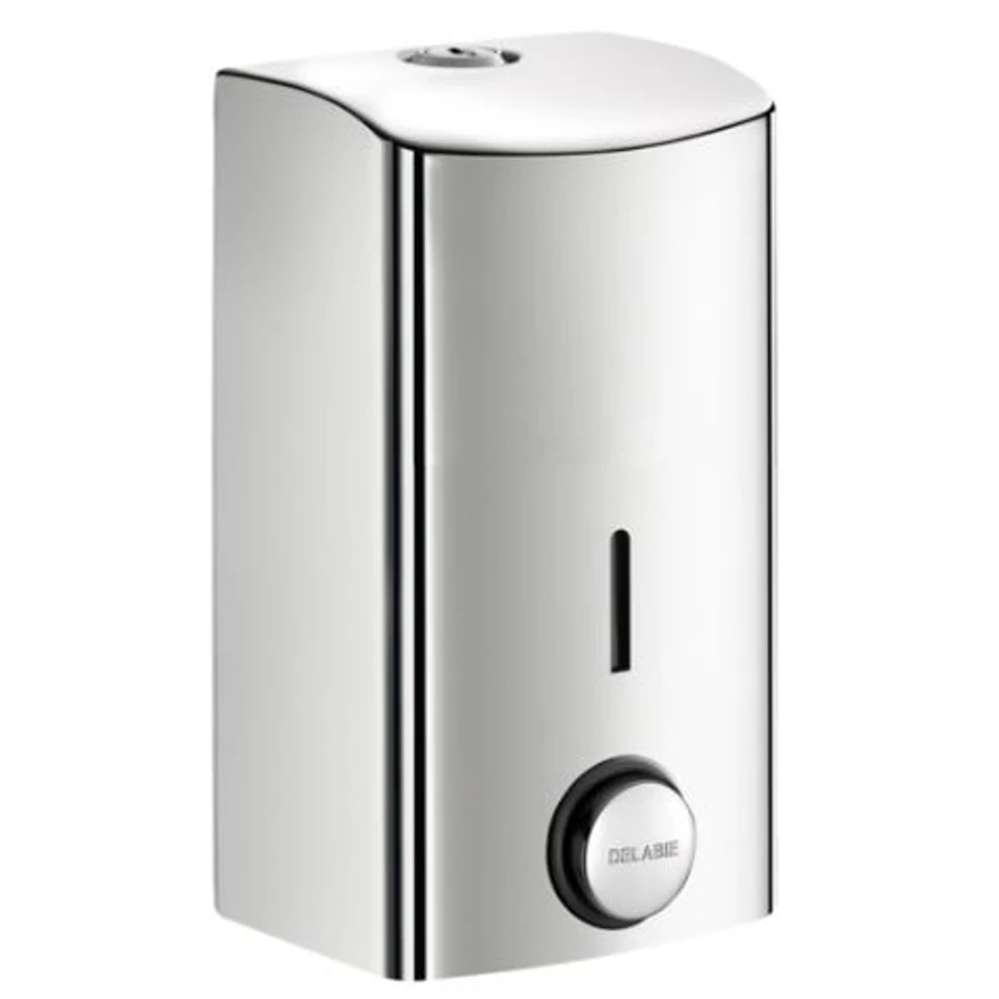 DELABIE nyomógombos szappanadagoló, lekerekített, SLIM dizájn, 1000ml műanyag tartály, 1mm r.m. acél lemez, fényes