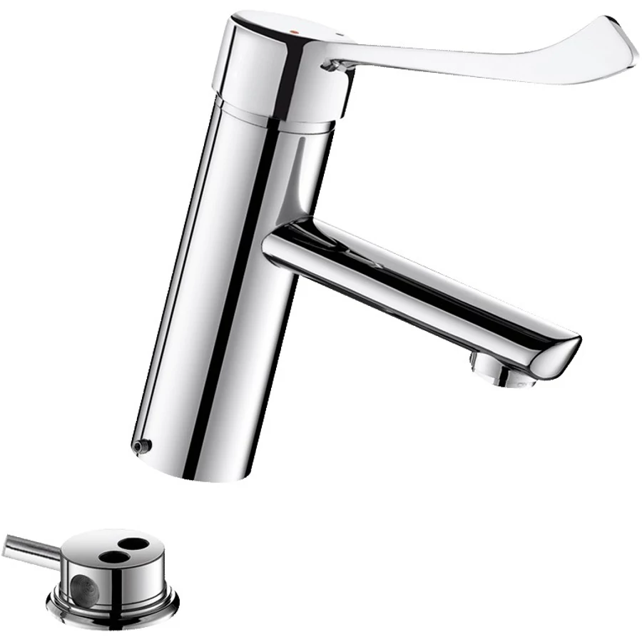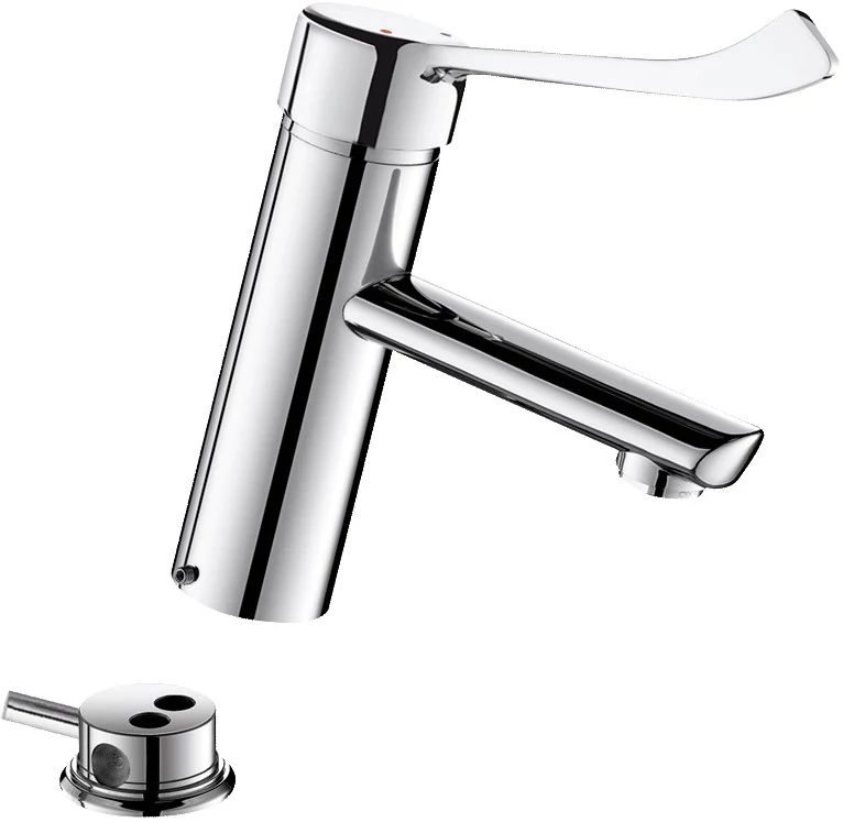 | Kialakítás | simára kiképzett belső csőfelülettel, mely segít megakadályozni a kórokozók letelepedését könnyen tisztítható orvosi karos, hosszított, higiénikus forma víztakarékos - a termék használatával a hagyományos mechanikus csaptelepekhez és öblítőszelepekhez képest jelentős vízmegtakarítás érhető el higiénikus ergonomikus |