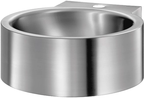 DELABIE REDO r.m. acél fali kerek kézmosó medence szifontakaró és csapfurat nélkül, selyem, 1,2 mm
