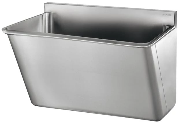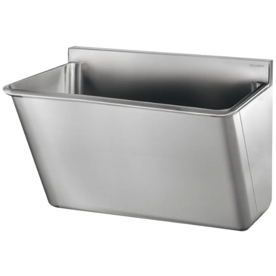 DELABIE sebészi bemosakodó vályú magas hátfallal, csapfurat nélkül, egy állásos 700mm, Hygiene+ dizájn, r.m. acél