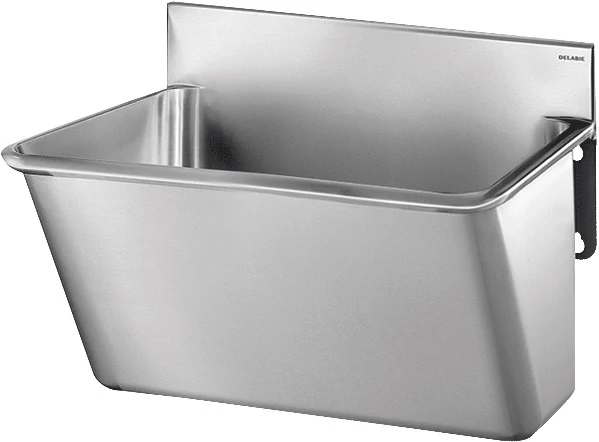 DELABIE sebészi bemosakodó vályú magas hátfallal, kevert vízre 1x1db 22mm csapfurattal, egy állásos 700mm, r.m. acél