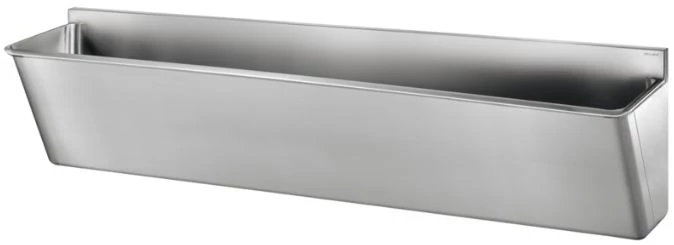 DELABIE sebészi bemosakodó vályú magas hátfallal, csapfurat nélkül, három állásos 2100mm, Hygiene+ dizájn, r.m. acél