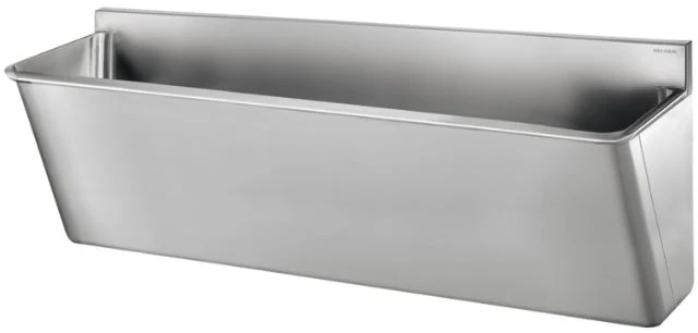 DELABIE sebészi bemosakodó vályú magas hátfallal, csapfurat nélkül, három állásos 2100mm, r.m. acél
