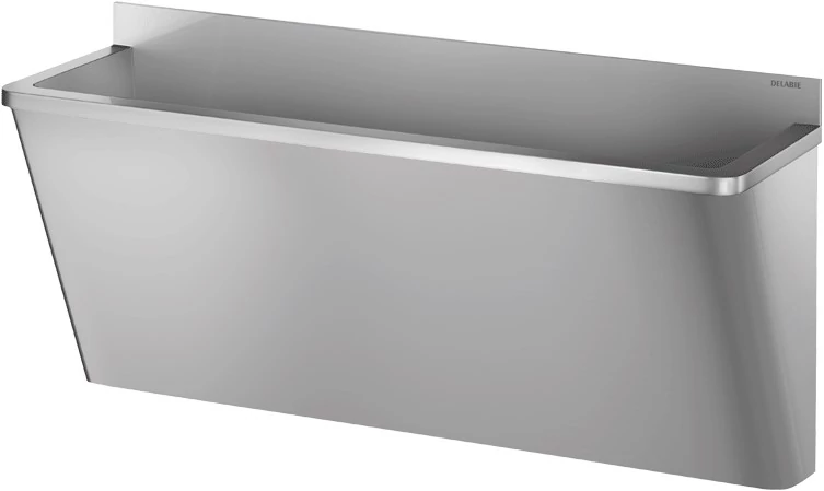 DELABIE sebészi bemosakodó vályú magas hátfallal, csapfurat nélkül, két állásos 1400mm, Hygiene+ dizájn, r.m. acél
